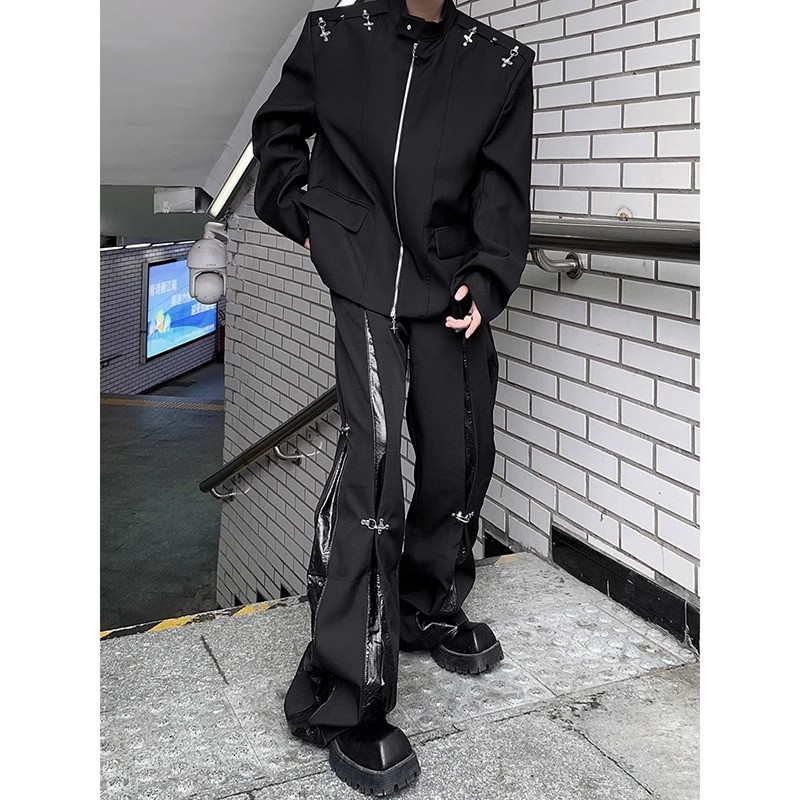 ビジネスシーンでは、シャツ+ジャケット+黒パンツで王道のスマートスタイルに。