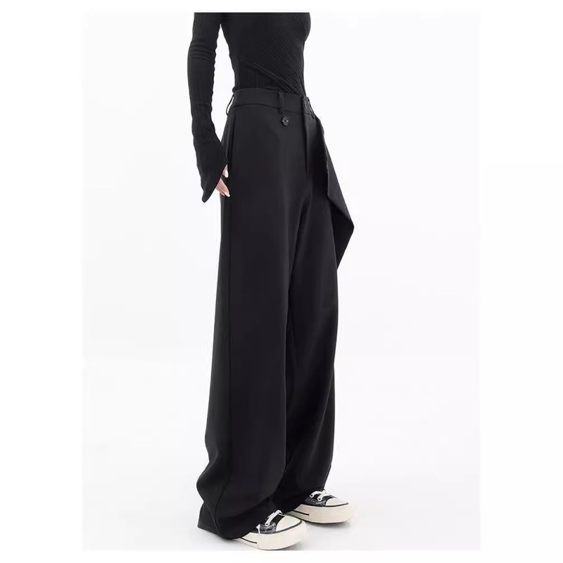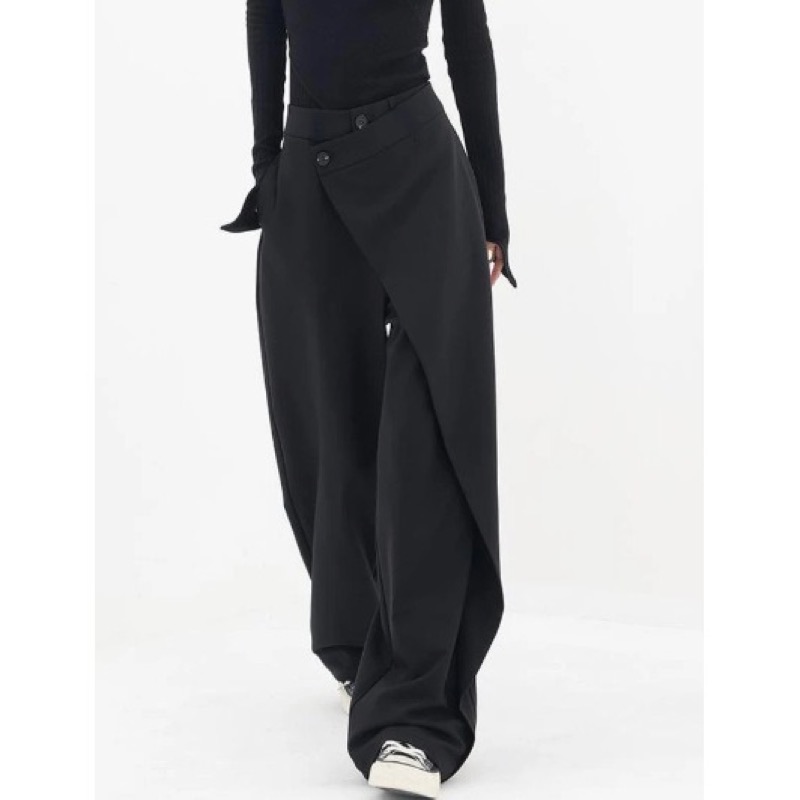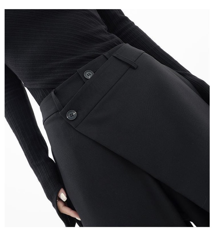 洗練された黒パンツで、ハイウエストデザインがスタイルアップを演出します。